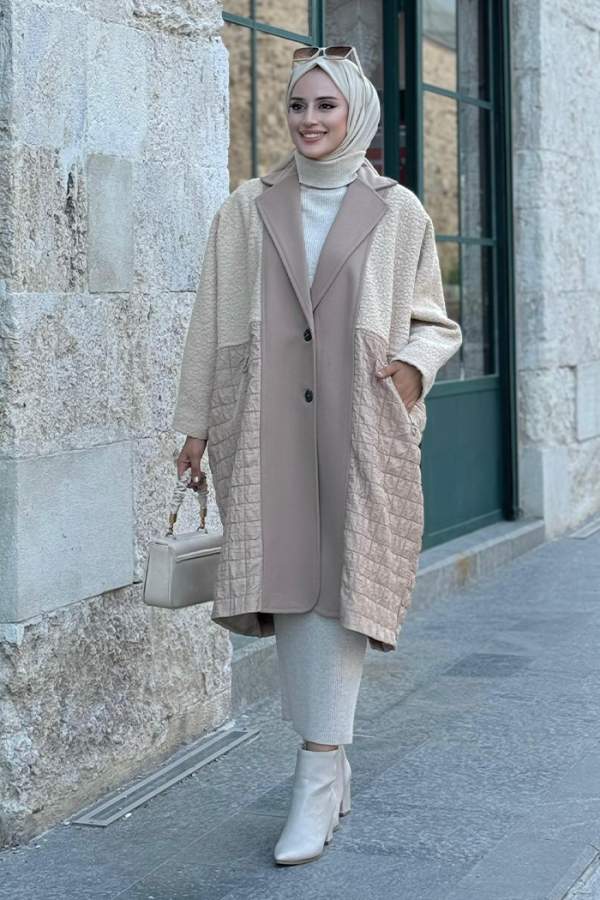 Astarlı Cepli Kapitone Kaban Vizon (7845)