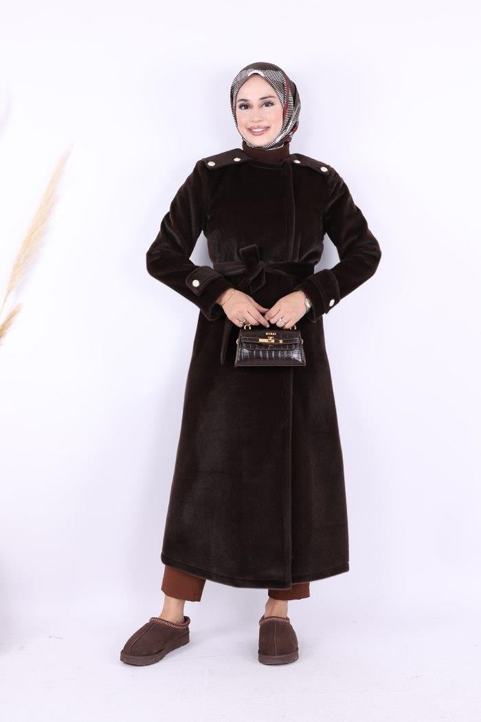 Düğmeli Uzun Kaban Kahverengi (70033)