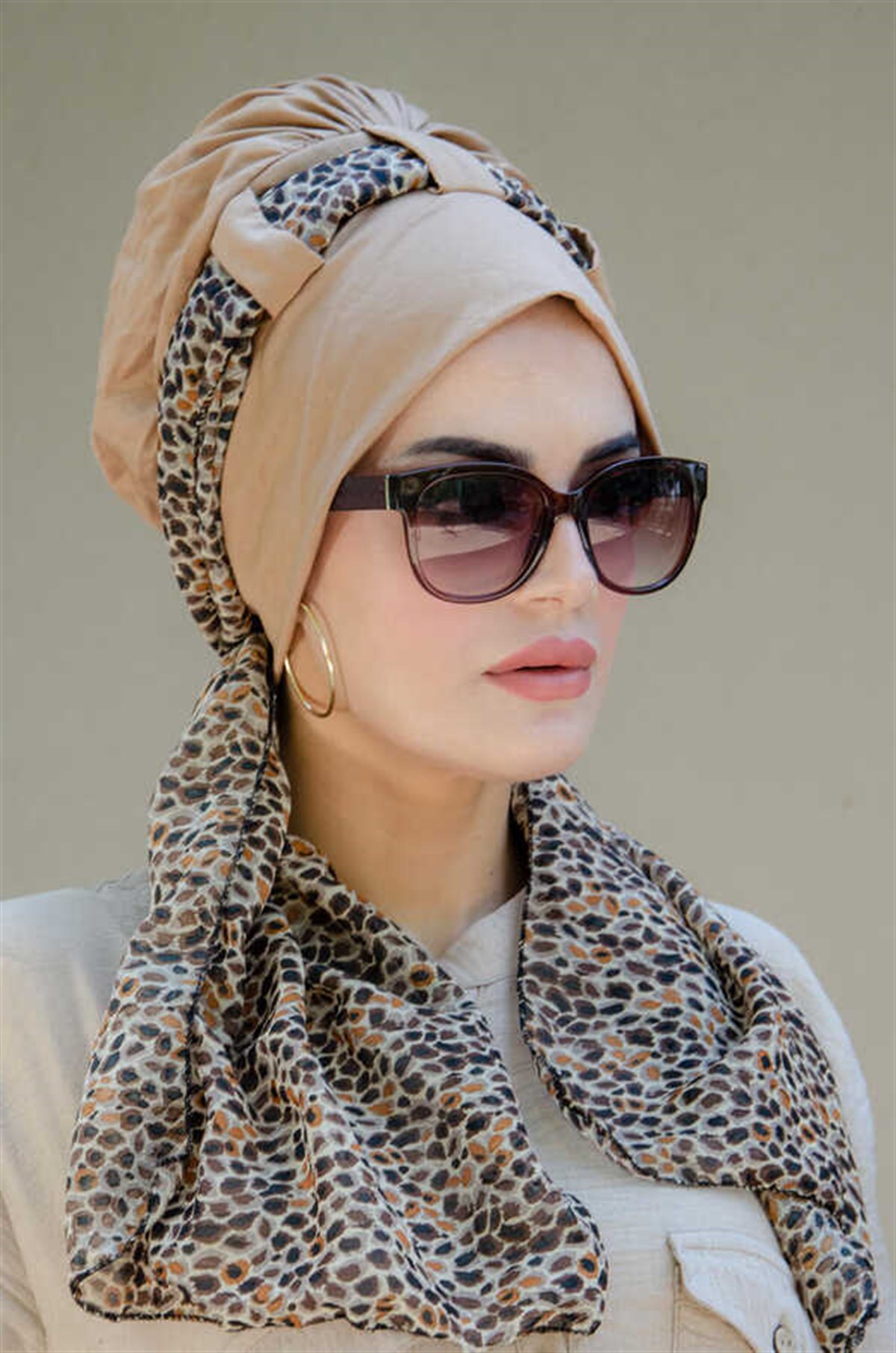 Bej Kahve Fularlı Bone